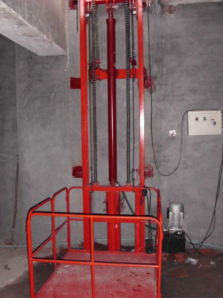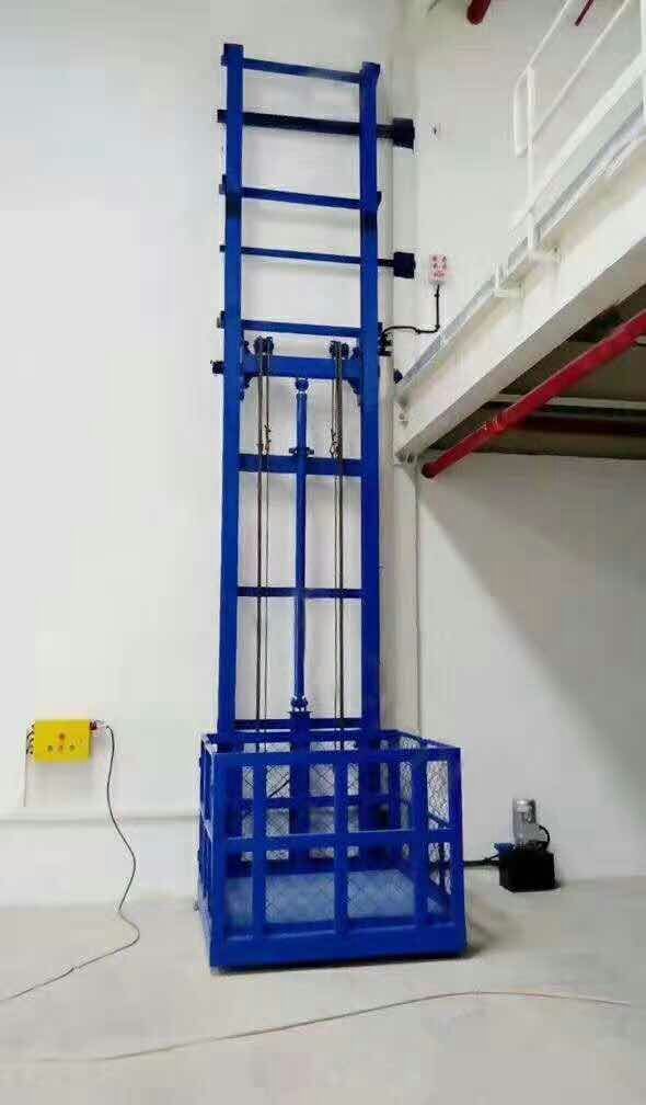 鏈條導(dǎo)軌式液壓升降貨梯是一種非剪叉式液壓升降機械設(shè)備.用于二三層工業(yè)廠房,餐廳,酒樓樓層間的貨物傳輸.最低高度在150-300mm,優(yōu)其適合不能開挖地坑的工作場所.并且無須上部吊點,形式多樣化(單柱,雙柱,四柱).設(shè)備運行平穩(wěn),操作簡單可靠,貨物傳輸經(jīng)濟便捷. 升降機采用液壓油缸作為主要動力,通過重型鏈條和鋼絲繩傳動,保證機器運行的絕對安全。無需地坑和機房,特別適合于有地下室、倉庫改造、新建貨架等,具有安裝維修方便、美觀、安全、操作方便。具體根據(jù)現(xiàn)場的實際環(huán)境生產(chǎn)。