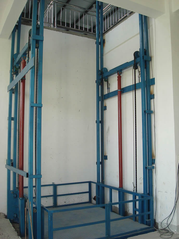 鏈條導軌式液壓升降貨梯是一種非剪叉式液壓升降機械設備.用于二三層工業(yè)廠房,餐廳,酒樓樓層間的貨物傳輸.最低高度在150-300mm,優(yōu)其適合不能開挖地坑的工作場所.并且無須上部吊點,形式多樣化(單柱,雙柱,四柱).設備運行平穩(wěn),操作簡單可靠,貨物傳輸經(jīng)濟便捷.