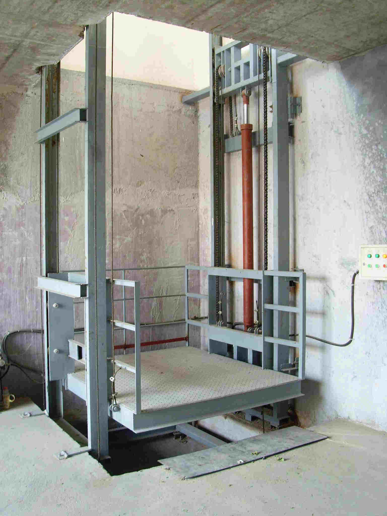 升降機(jī)采用液壓油缸作為主要?jiǎng)恿?,通過重型鏈條和鋼絲繩傳動(dòng),保證機(jī)器運(yùn)行的絕對安全。無需地坑和機(jī)房,特別適合于有地下室、倉庫改造、新建貨架等,具有安裝維修方便、美觀、安全、操作方便。具體根據(jù)現(xiàn)場的實(shí)際環(huán)境生產(chǎn)。